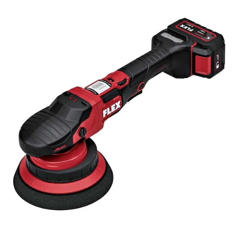 En trådløs, børsteløs polermaskin med 15 mm Dual Action utkast, for deg som vil ha FLEX-kvalitet uten ledning. Maskinen gir stabil kraft hele veien til batteriet er tomt, og er designet for å gi et jevnt, hologramfritt resultat på alle typer lakk.